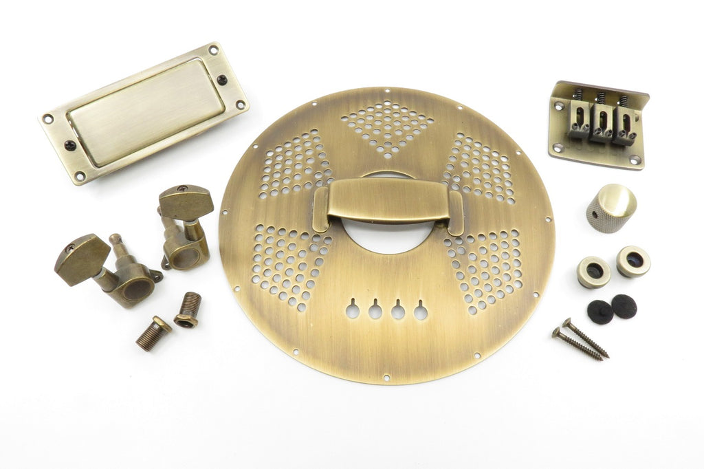 4-String Cigar Box Resonator Cone Kit Diamond Aged Brass